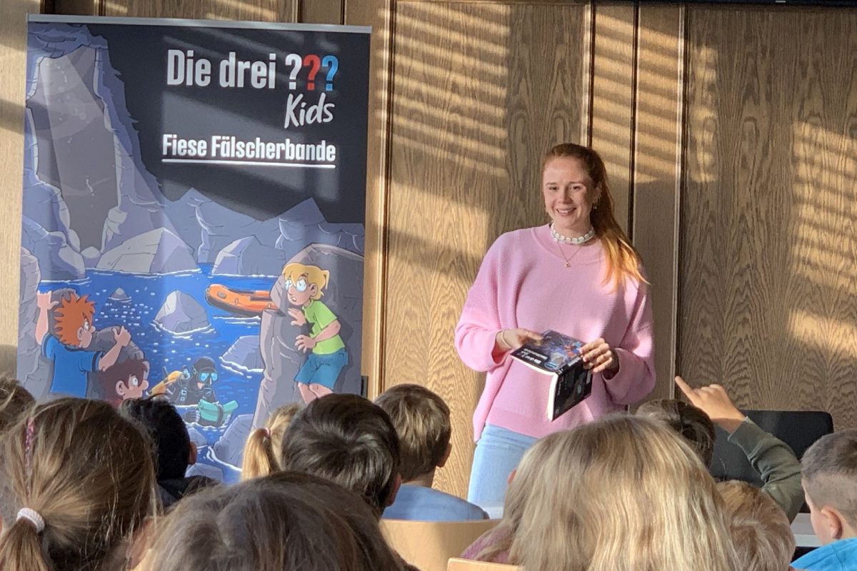 Im Rahmen der Kinder- und Jugendbuchwochen kam heute die Autorin Helene Blanck* zu einer interaktiven Mitmachlesung rund um die „drei ??? Kids“ ins Lecker Rathaus. Eingeladen dazu waren die dritten Klassen der Grundschule an der Linde/Enge-Sande von unserer Gemeindebücherei. Die Veranstaltung findet jedes Jahr mit finanzieller Unterstützung der Nord Ostsee-Sparkasse statt, wofür wir herzlich Danke sagen!