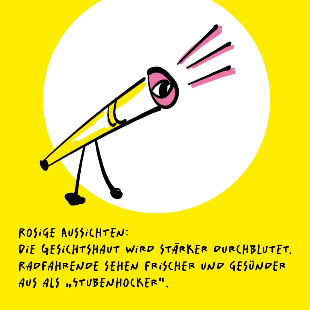 Die Gesichtshaut wird stärker durchblutet. Radfahrende sehen frischer und gesünder aus als „Stubenhocker“.