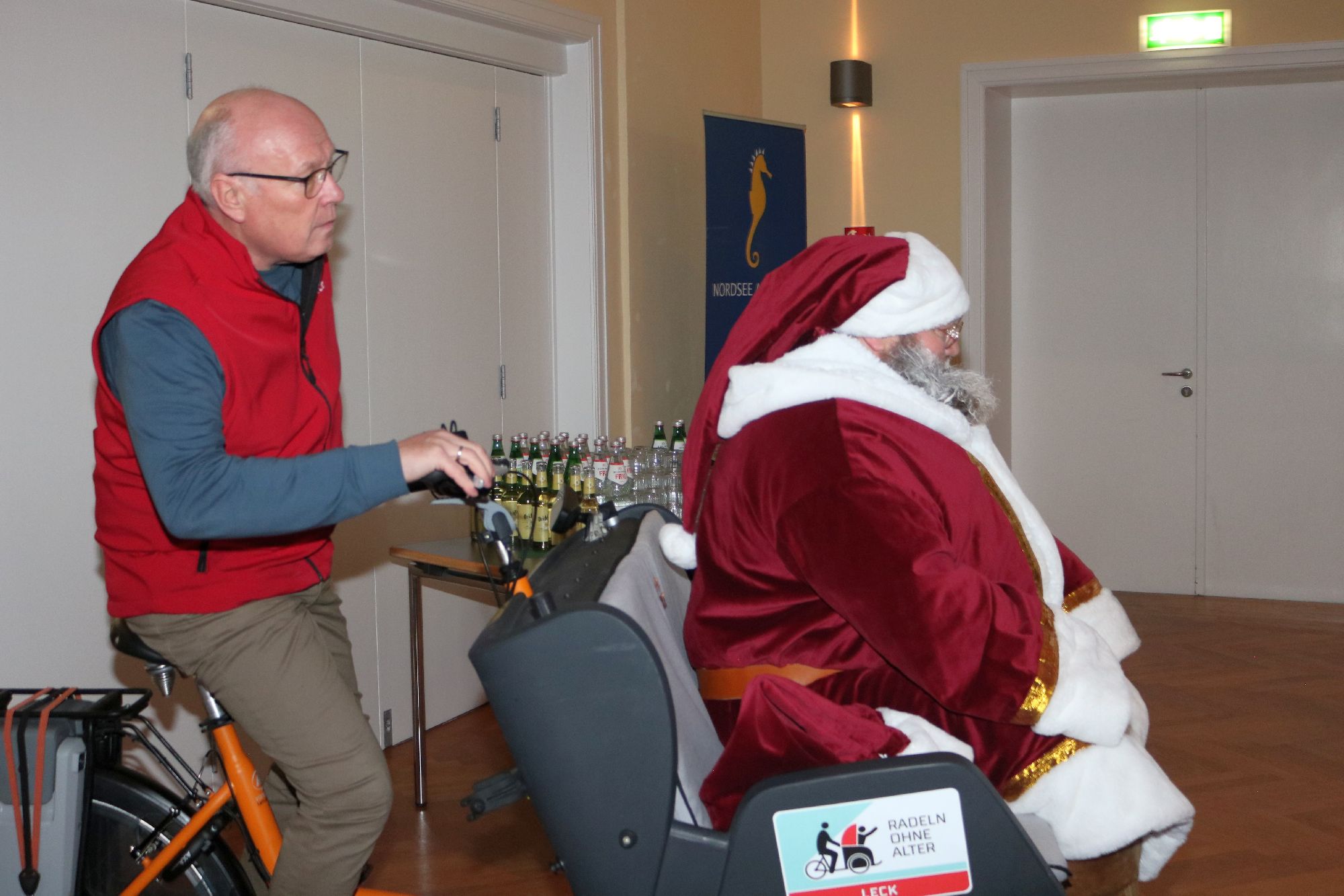 Neben einem großen Applaus für die jungen Künstlerinnen und Künstler gab es danach eine große Überraschung: Der Weihnachtsmann höchstpersönlich wurde mit einer Rikscha in den Festsaal gefahren.