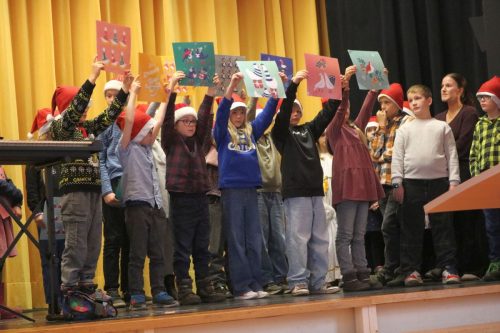 Der Weihnachtsmann belohnte den Auftritt der Grundschulkinder gerne mit kleinen Geschenken.
