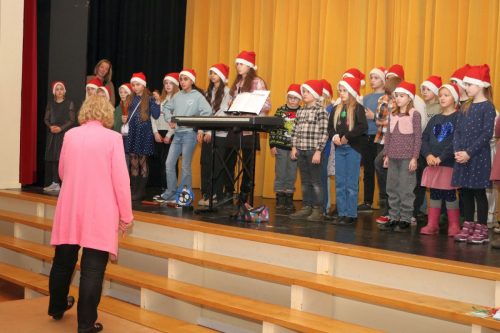 Dann war es so weit und rund 30 Kinder konnten auf der Bühne mit ihrem Auftritt beginnen: da klangen Gedichte und Weihnachtslieder, auch eine kleine Darbietung zu den Klängen des englischen Christmas Carols „The Twelve Days of Christmas“ brachten die Kinder unter Aufbietung höchster Konzentration dar.