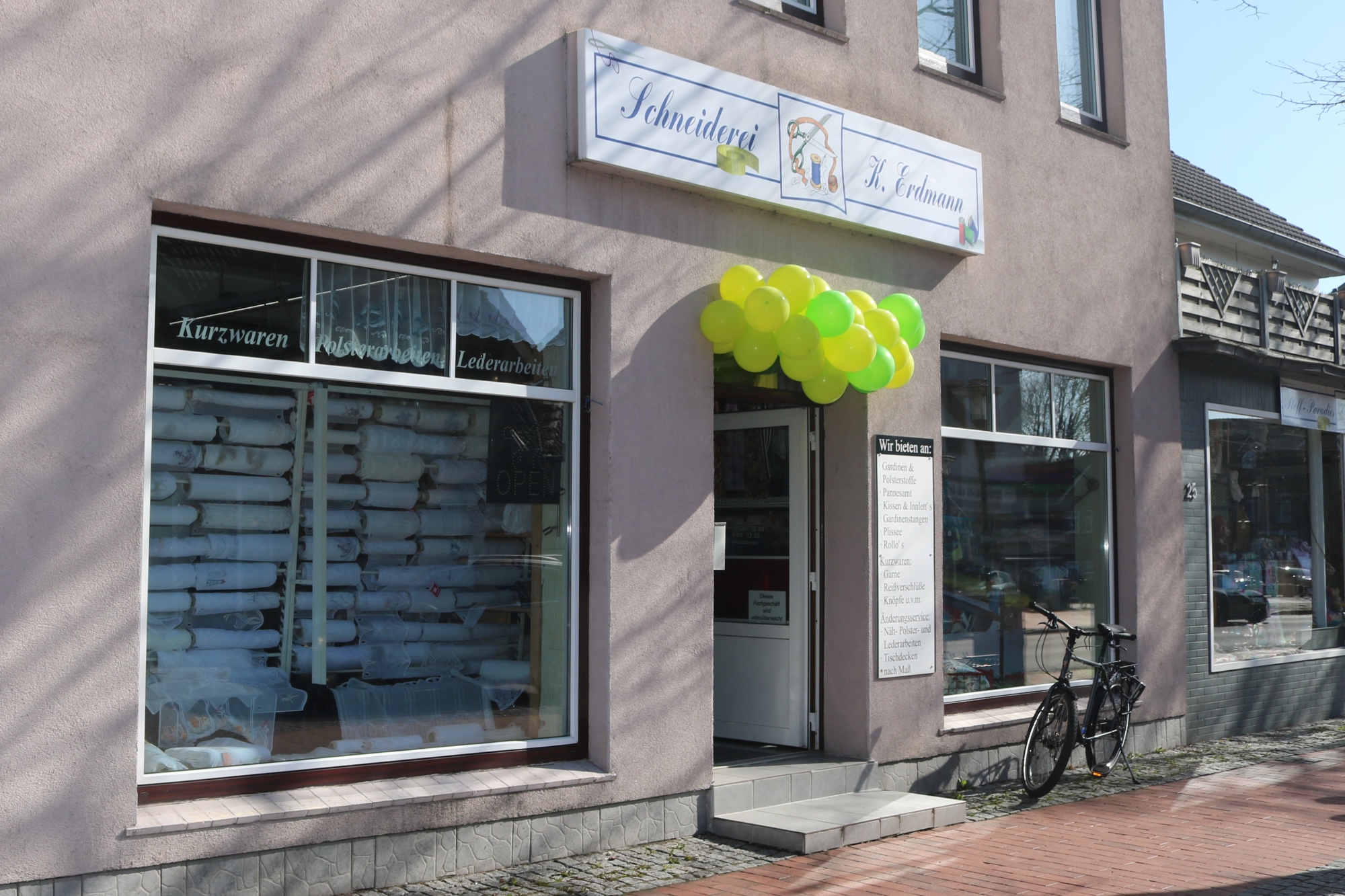 Zum 01. April 2006 zog die Schneiderei in die ehemalige Druckerei Nielsen, Hauptstraße 25 – die Räume, die bis heute ihr Zuhause sind. Am 01. August 2010 kam eine Polsterei in der Hauptstraße 27 dazu, und zum 15. März 2014 folgte die Erweiterung in die Hauptstraße 29 – endlich genug Platz, um Stoffe, Kurzwaren und das ganze vielseitige Sortiment übersichtlich zu zeigen.