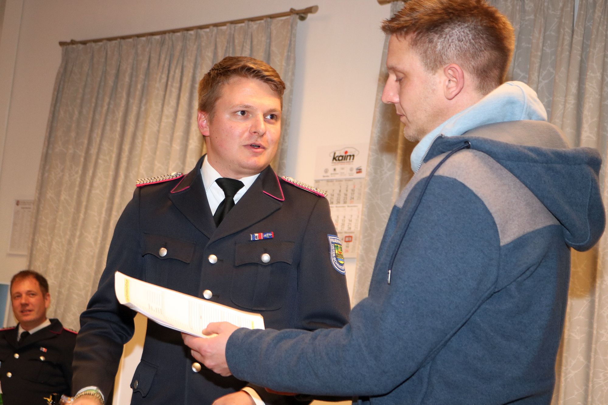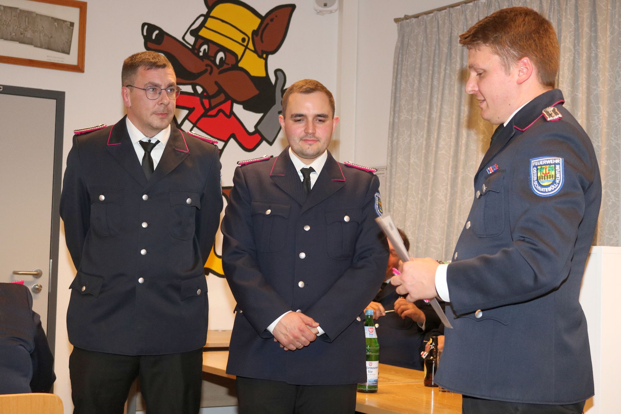 Dann gab es noch zwei Beförderungen: Tobias Friedrichs und Lewe Steensen wurden zum Oberfeuerwehrmann befördert.
