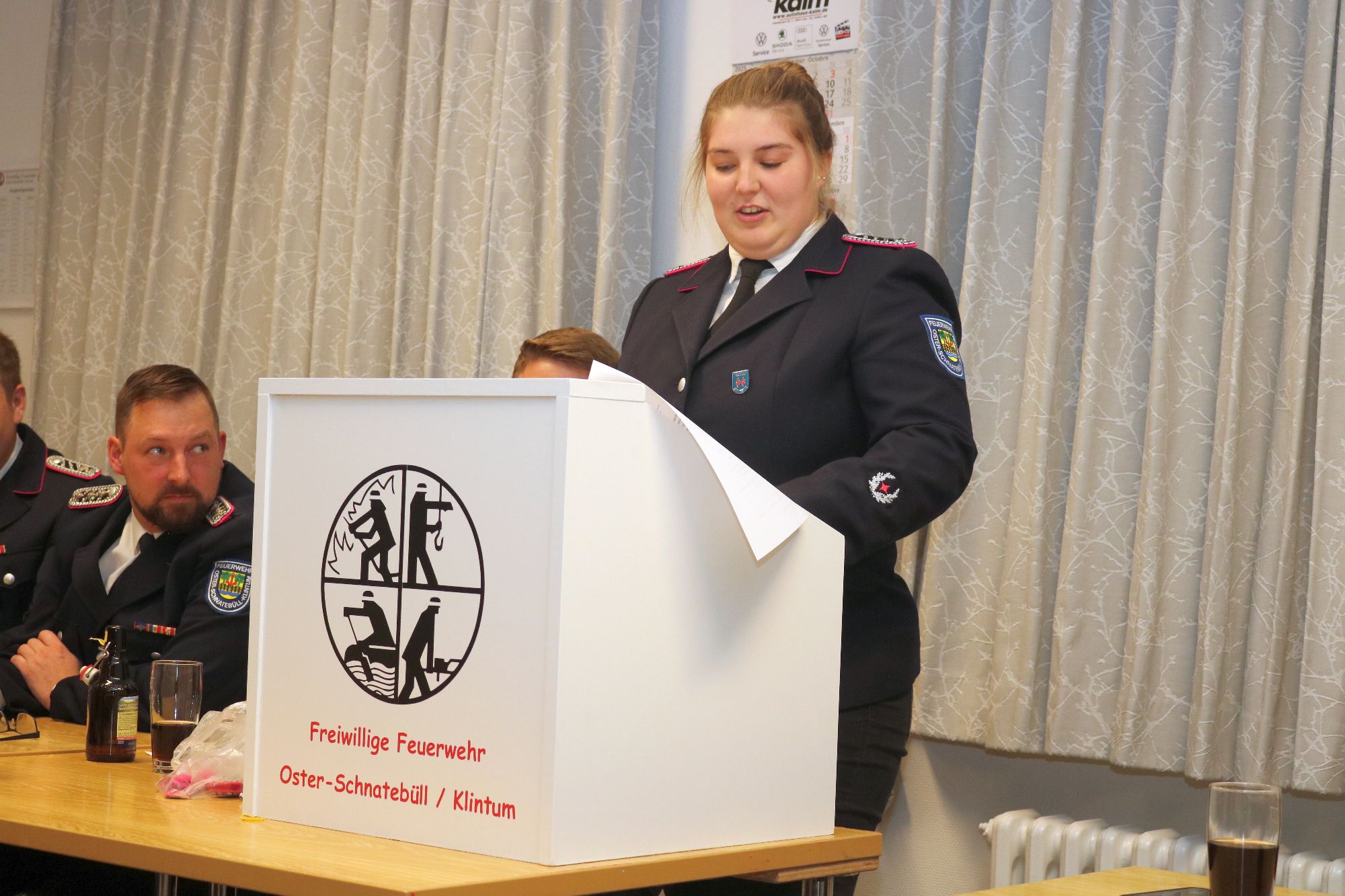„Eure Arbeit hat für unsere beiden Ortsteile eine enorme Bedeutung! Ich bin stolz darauf, dass Klintum und Oster-Schnatebüll so eine kameradschaftliche Wehr haben!“ (Karin Martens)