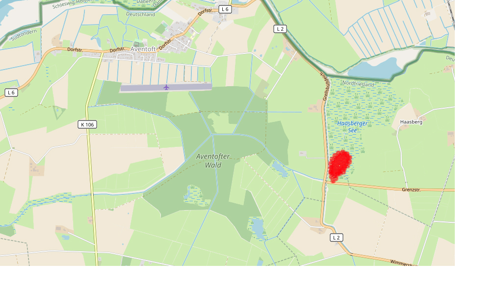 Wo: Südlich des Haasberger Sees, an der Kreuzung Grenzstraße und L2 (siehe Karte). Von Aventoft aus folgen Sie der L2 etwa 3 Kilometer bis zu der Kreuzung. 54°53‘12‘‘N 8°50‘54‘‘