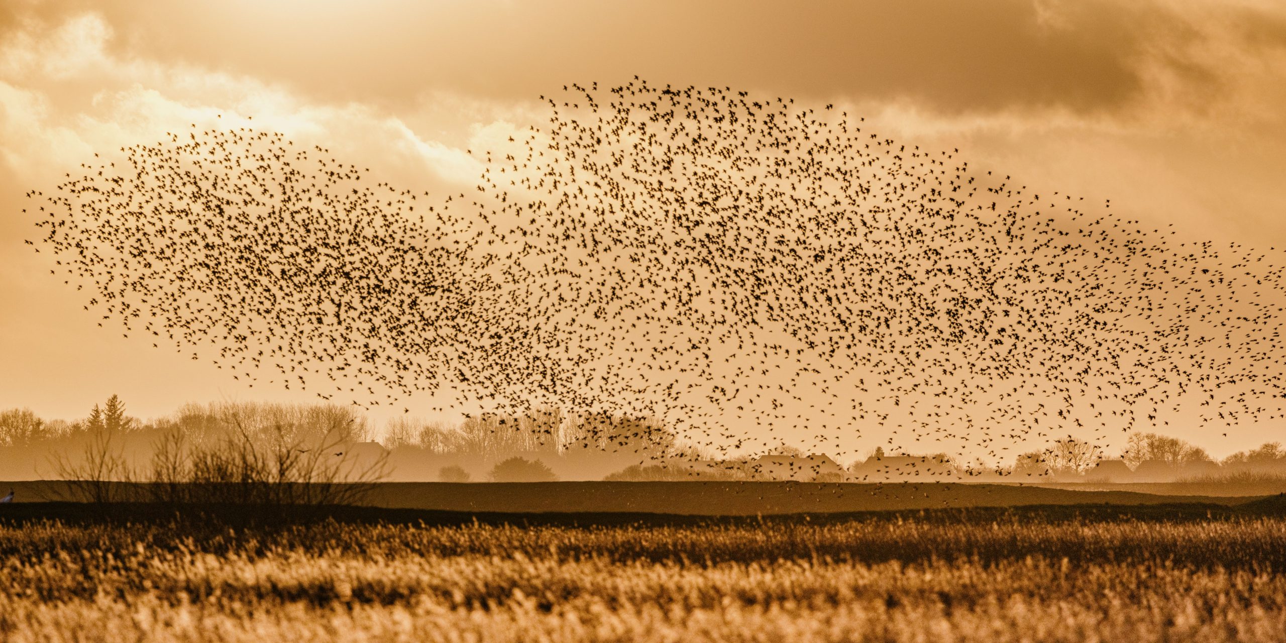 Wenn die Stare Ende September bis Mitte Oktober auf ihrer Reise in den Süden hier in Nordfriesland rasten, lässt sich ein einzigartiges Naturereignis beobachten: „Die schwarze Sonne“ oder „Sort Sol“ auf Dänisch. Teils Hunderttausende Stare sammeln sich kurz vor der Abenddämmerung an einem Nachtlagerplatz. Bemerken die Stare einen Greifvogel, der sich nähert, fliegt der ganze Schwarm auf und führt beeindruckende Flugmanöver durch – ein spektakulärer Anblick, den man gesehen haben sollte.