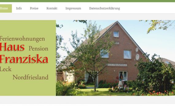 Haus Franziska Karl-Heinrich Sippel Sylter Weg 8 25917 Leck Telefon: 04662 – 5122 E-Mail: hausfranziska@yahoo.com Website www.ferienwohnungen-pension-leck.de