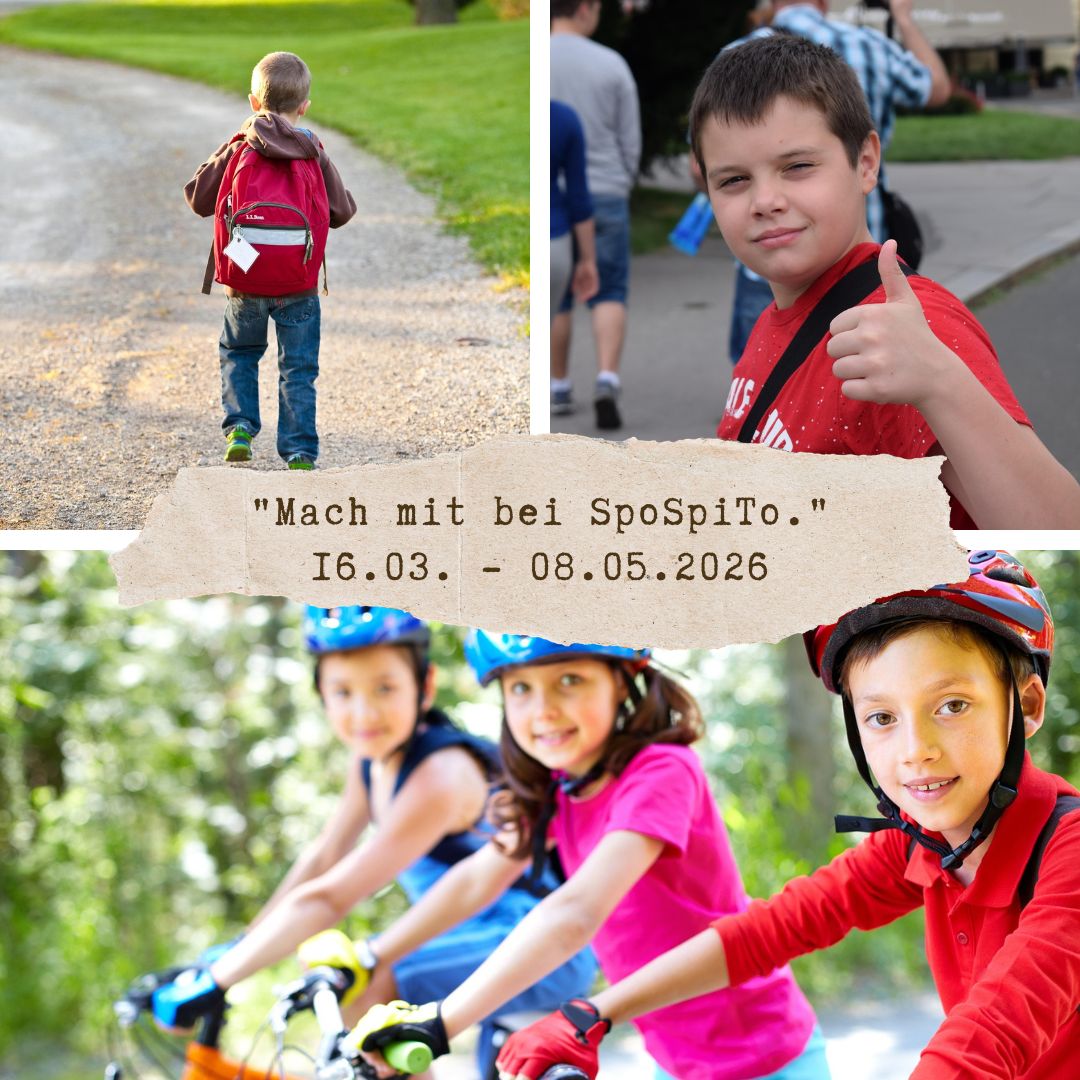 Jedes Kind erhält einen SpoSpiTo-Bewegungs-Pass. Für jeden Tag innerhalb des Projektzeitraums von 6 Wochen, an dem ein Kind den Weg (Hin- und Rückweg) zur Schule zu Fuß, mit dem Tretroller oder mit dem Fahrrad (erst nach der Verkehrsprüfung) zurückgelegt hat (gerne in Begleitung eines Elternteils), dürfen die Eltern eine Unterschrift in eine entsprechende Tabelle setzen. Ist die Tabelle mit 20 Unterschriften gefüllt, kann der SpoSpiTo-Bewegungs-Pass beim Sekretariat / bei der Klassenlehrkraft abgegeben werden. Dafür erhält jedes Kind eine SpoSpiTo-Urkunde!