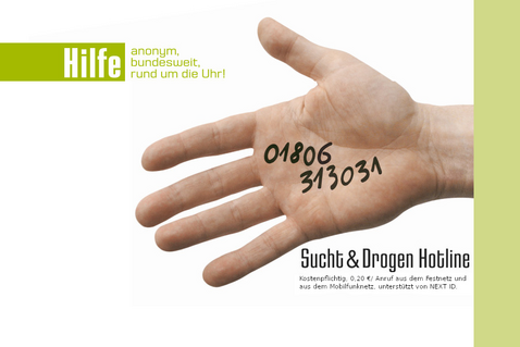 Sucht- & Drogen-Hotline | Telefon 0180 5 / 31 30 31 (kostenpflichtig!) Rund um die Uhr besetzt |