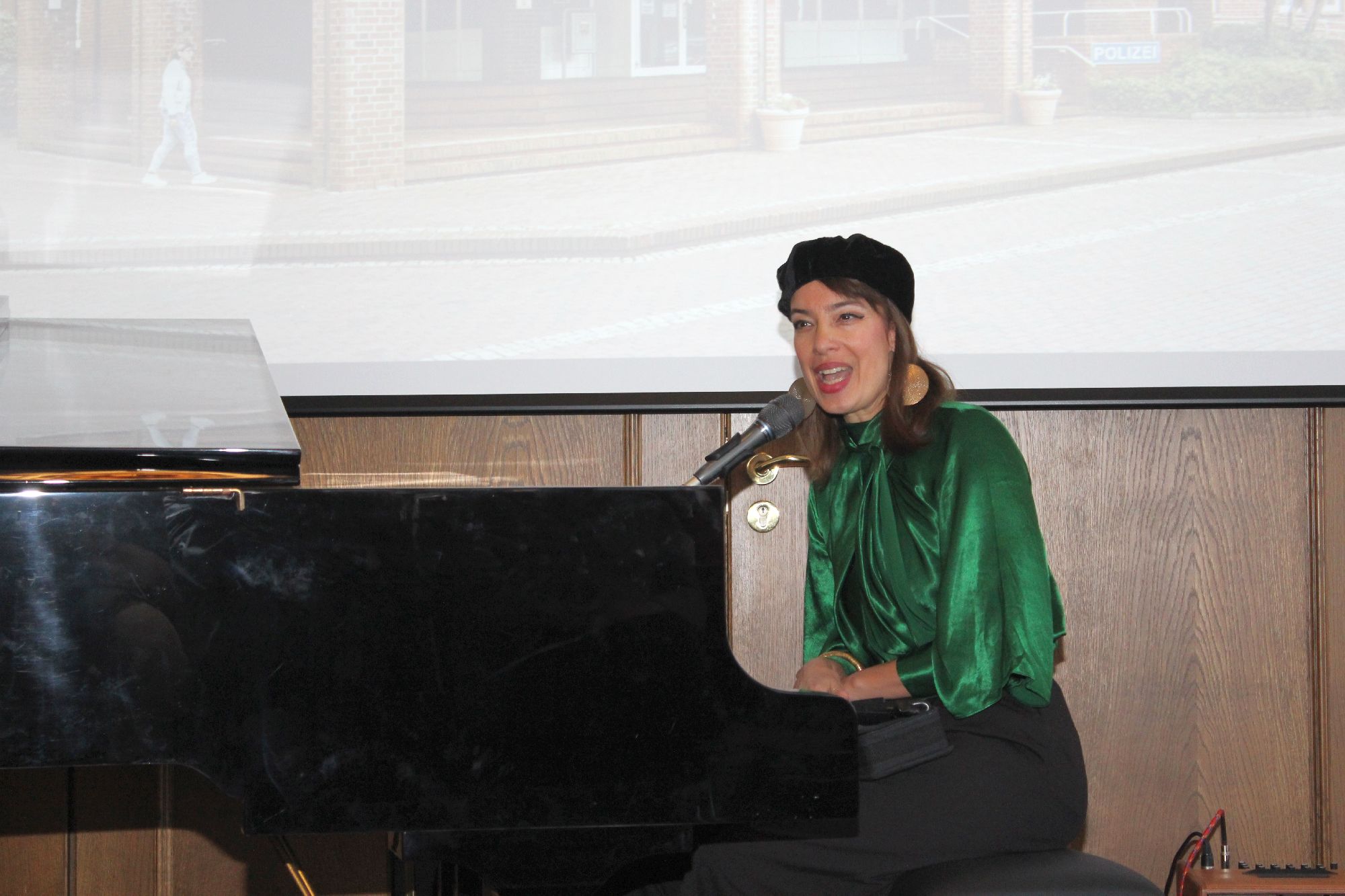 Den musikalischen Zwischenspielen wurde dieses Mal sehr aufmerksam Gehör geschenkt, was auch der Ausnahmekünstlerin Nadine Jeanne zu verdanken war, die nach der Begrüßung durch Bürgermeister Andreas Deidert zum ersten Mal eine Kostprobe ihres Talentes gab.